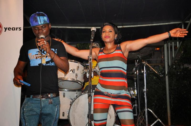 Pepeta, Luiza Mbutu (kushoto( na Dogo Rama wakitoa burudani wakati wa